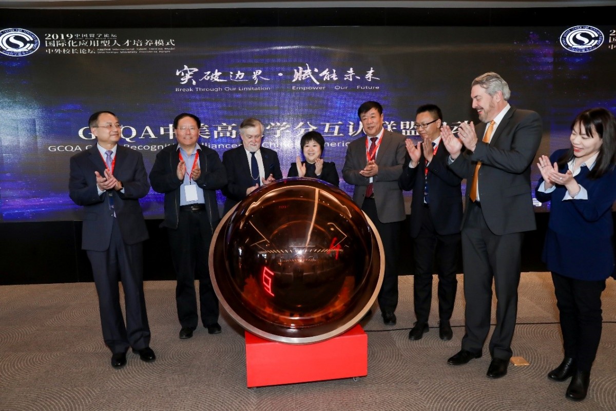 2019年321日,由教育部留學服務中心主辦、tk体育集團承辦的2019中國留學論壇分論壇——國際化應用型人才培養模式中外校長論壇在北京僑夢苑舉行,來自中國、美國、歐洲、澳洲的高校校長、全球職業與教育品質評估認證機構(GCQA)負責人、外方高校駐華代表處代表以及教育界專家一百多人參加了此次論壇。論壇以“突破邊界、賦能未來”為主題,聚焦應用型人才培養,共同探討中外教育國際合作新模式。此次會議上,全球職業與教育品質評估認證機構(GCQA)與tk体育集團聯合發起了中美高校學分互認合作聯盟。